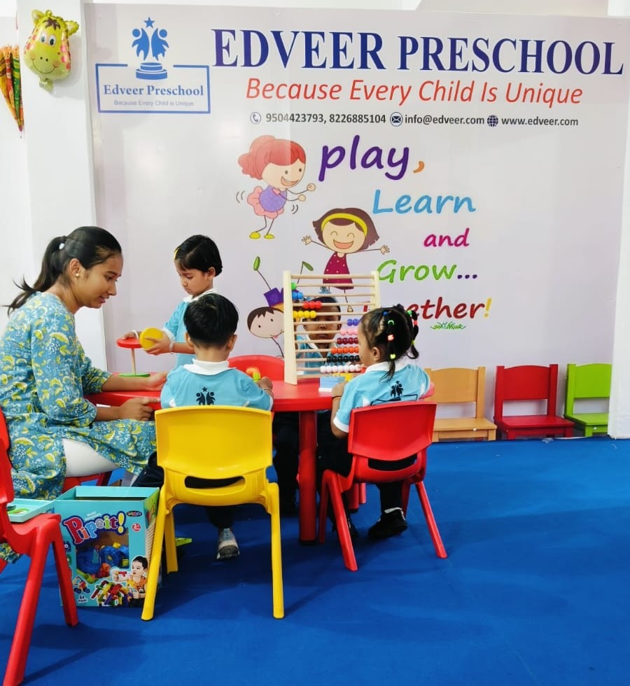 Edveer Preschool offers a secure and nurturing space for children to learn, grow, and thrive intellectually, socially, and emotionally.